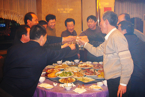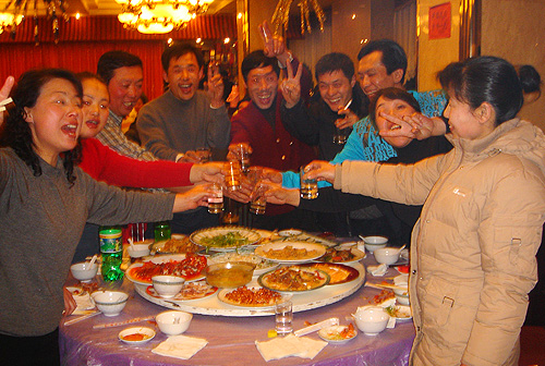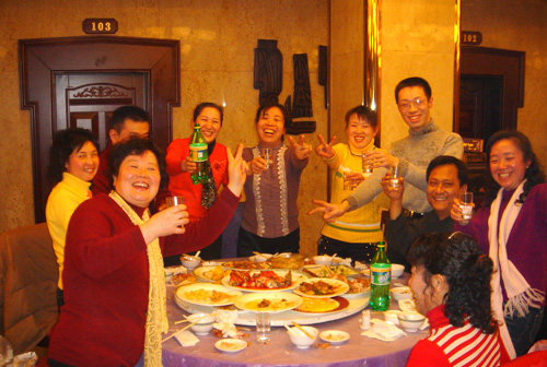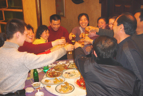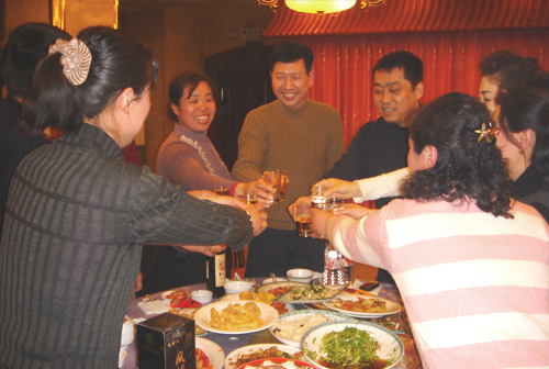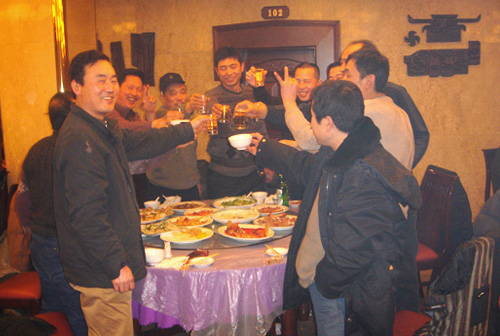 辭舊迎新,辛苦了一年的團隊,在年終由公司舉辦的聚餐晚會上,盡情暢 飲。